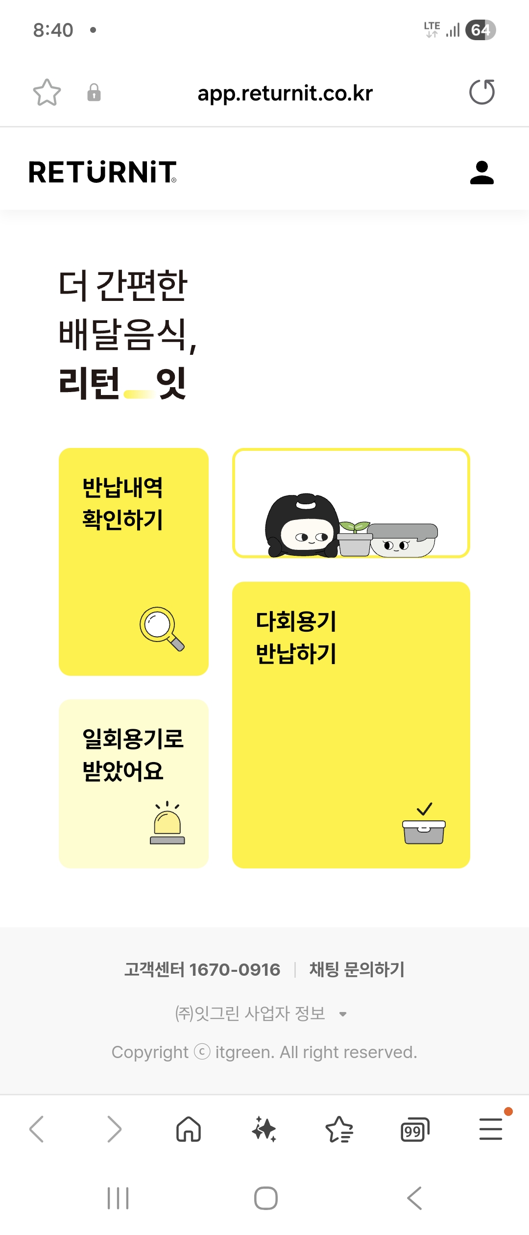 다회용기로 주문을 하면 당연히 일회용 용기는