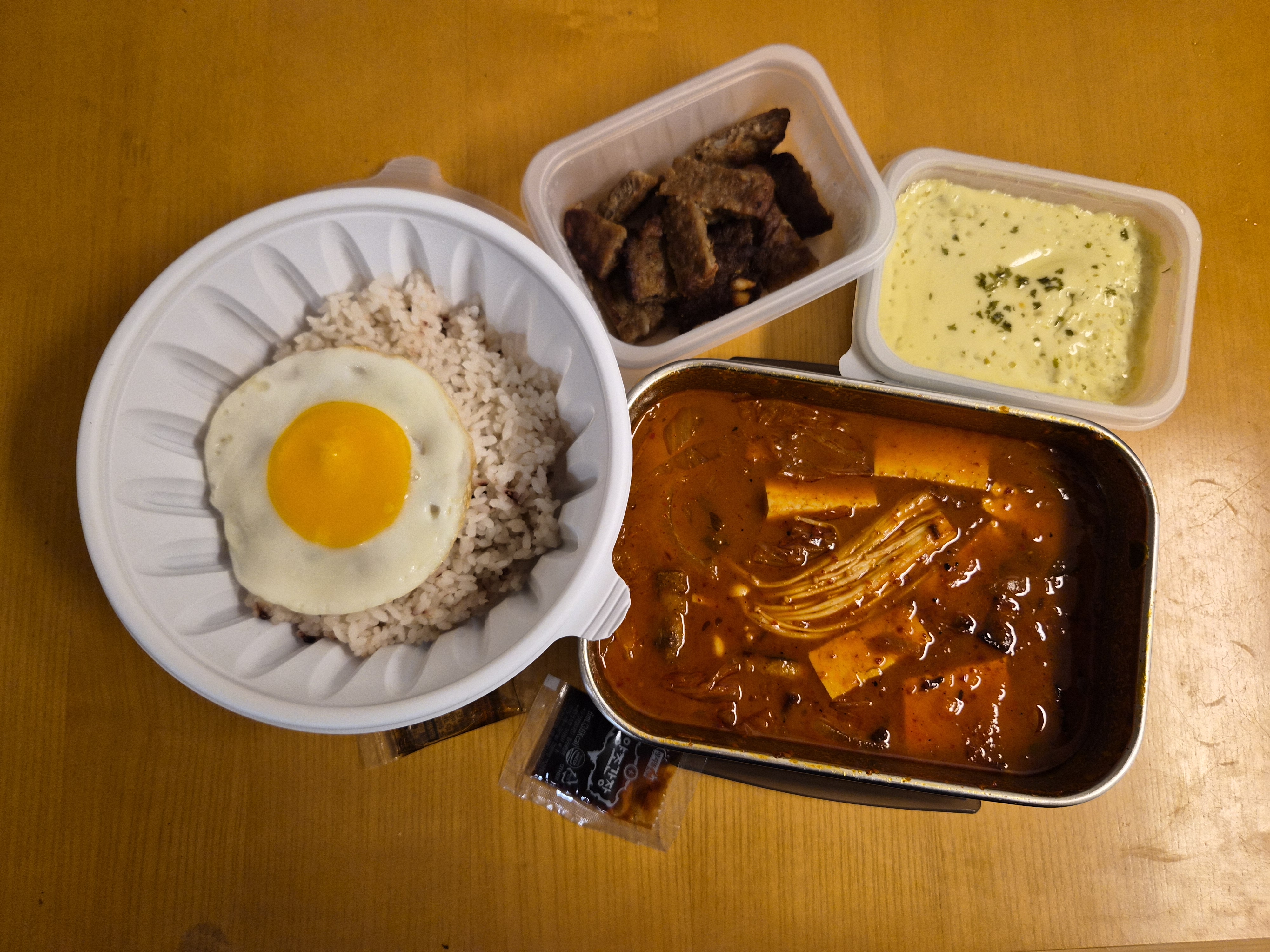 그런데 다회용기와 일회용 용기가 같이 왔네요.