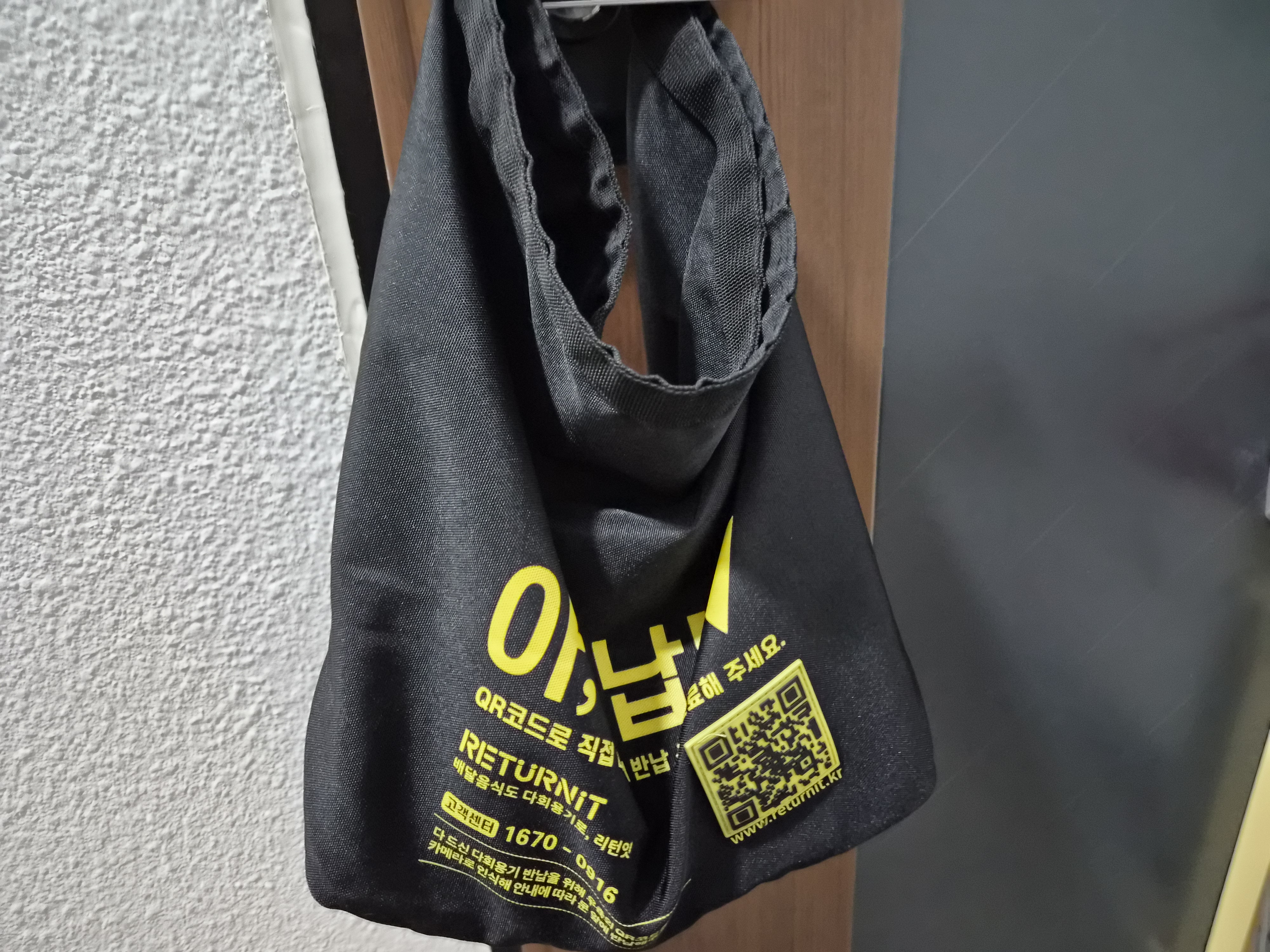 카톡을 확인하고 사진처럼 가방을 현관 앞에 걸어두었습니다.