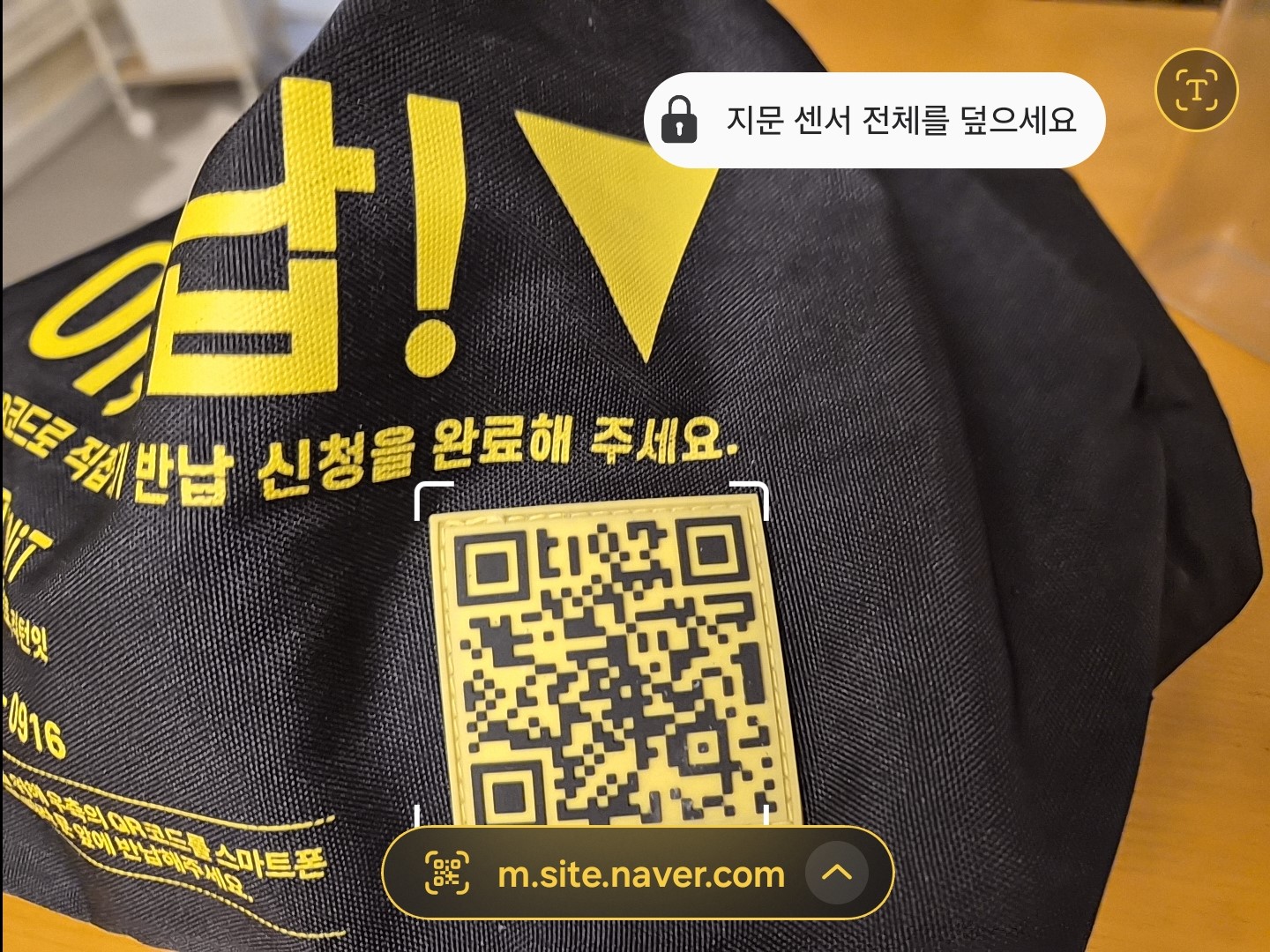 그리고 가방 겉면에 있는 큐알코드를 카메라로 찍었어요.