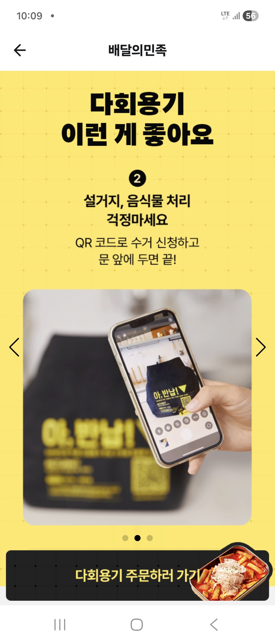 4. 위 화면이 나오면 '다회용기 주문하러 가기'를 눌러요.
