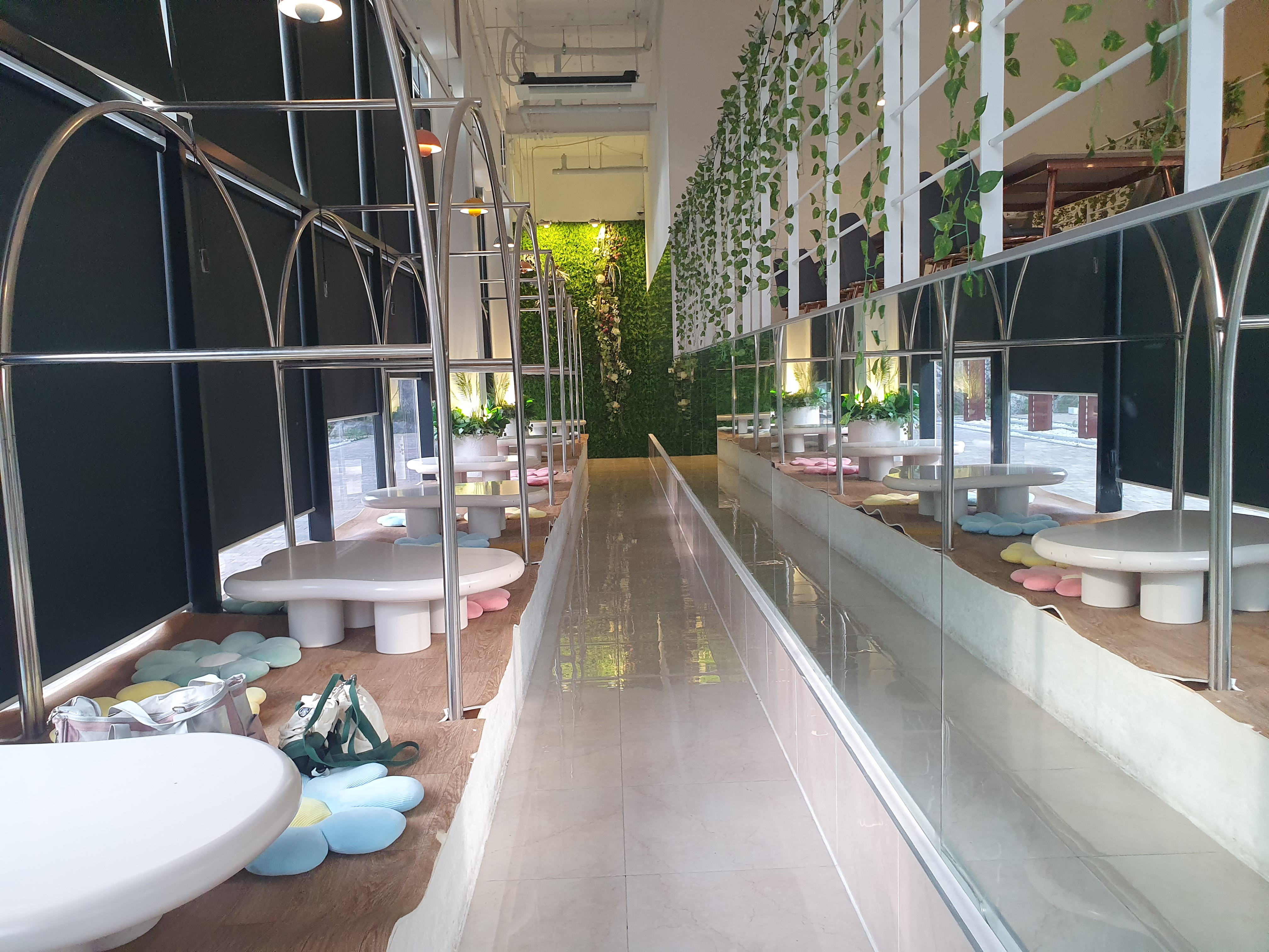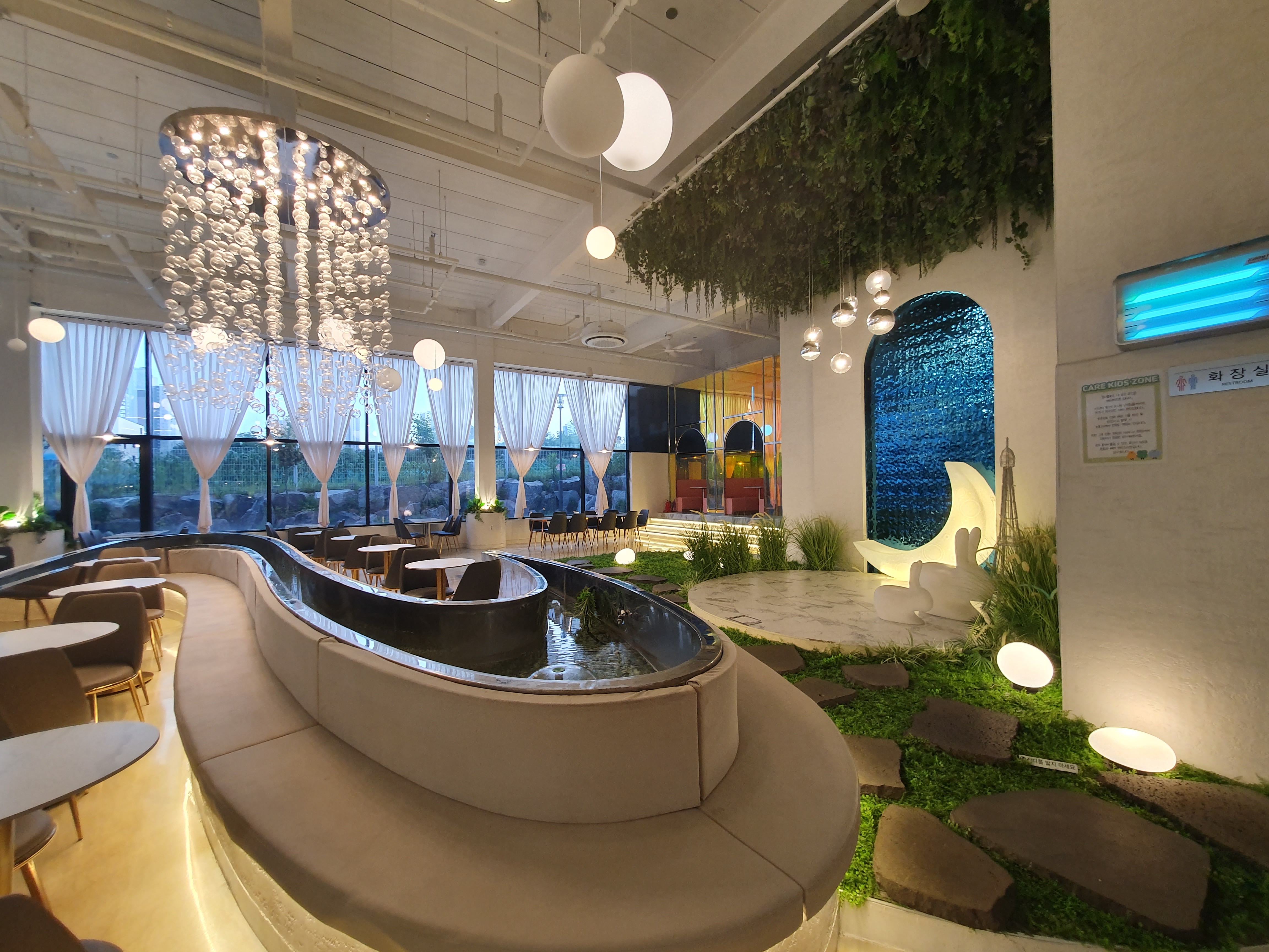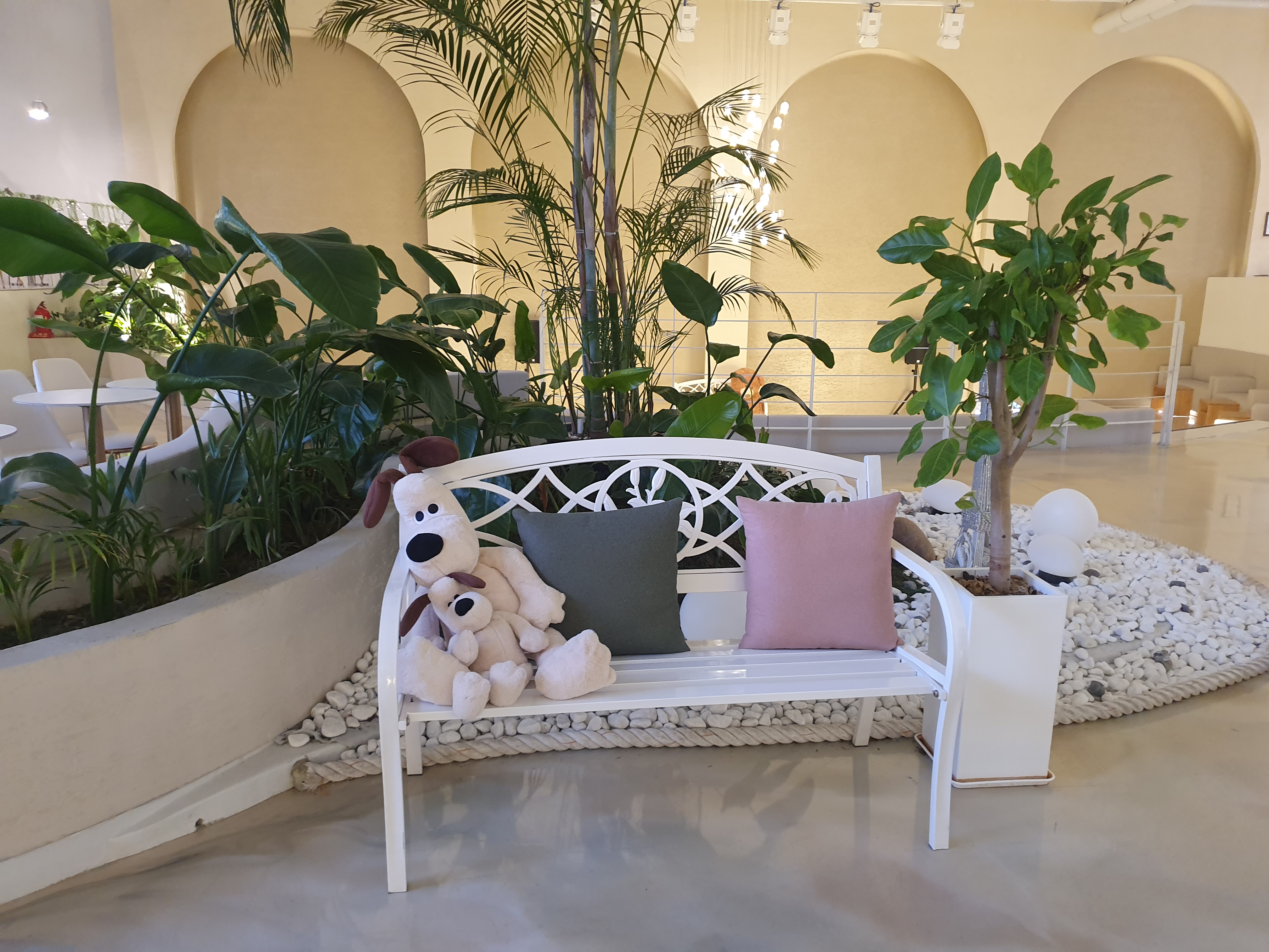 인테리어는 화이트 톤으로 아주 화사한 느낌을 주었습니다. 곳곳에 배치된 식물과 조형물들이 너무 예뻤어요!