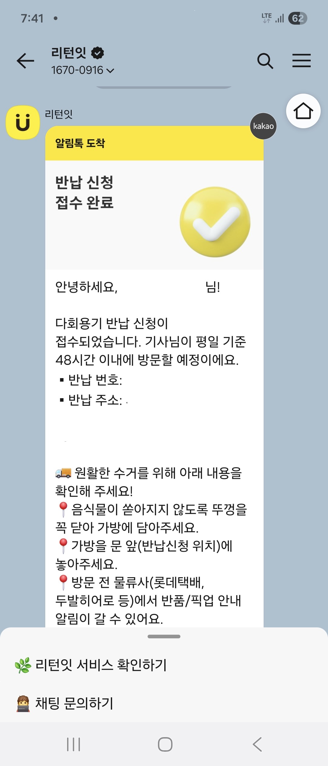24. 수거가 완료되면 문자와 알림톡이 옵니다.