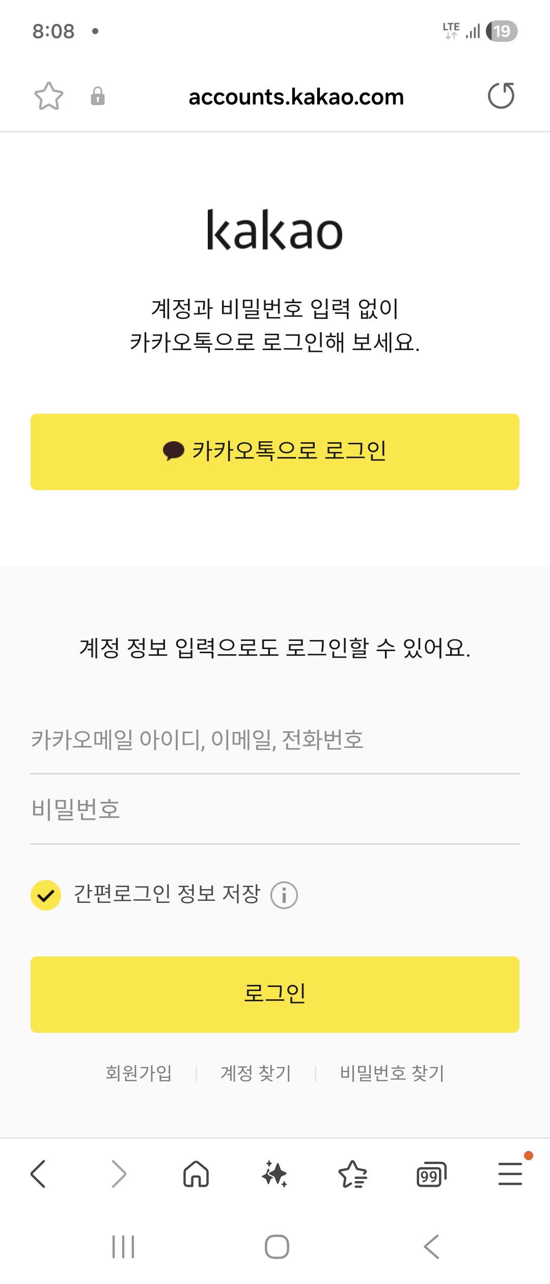 간편하게 카카오톡으로 가입을 해두는 것도 편리해요.