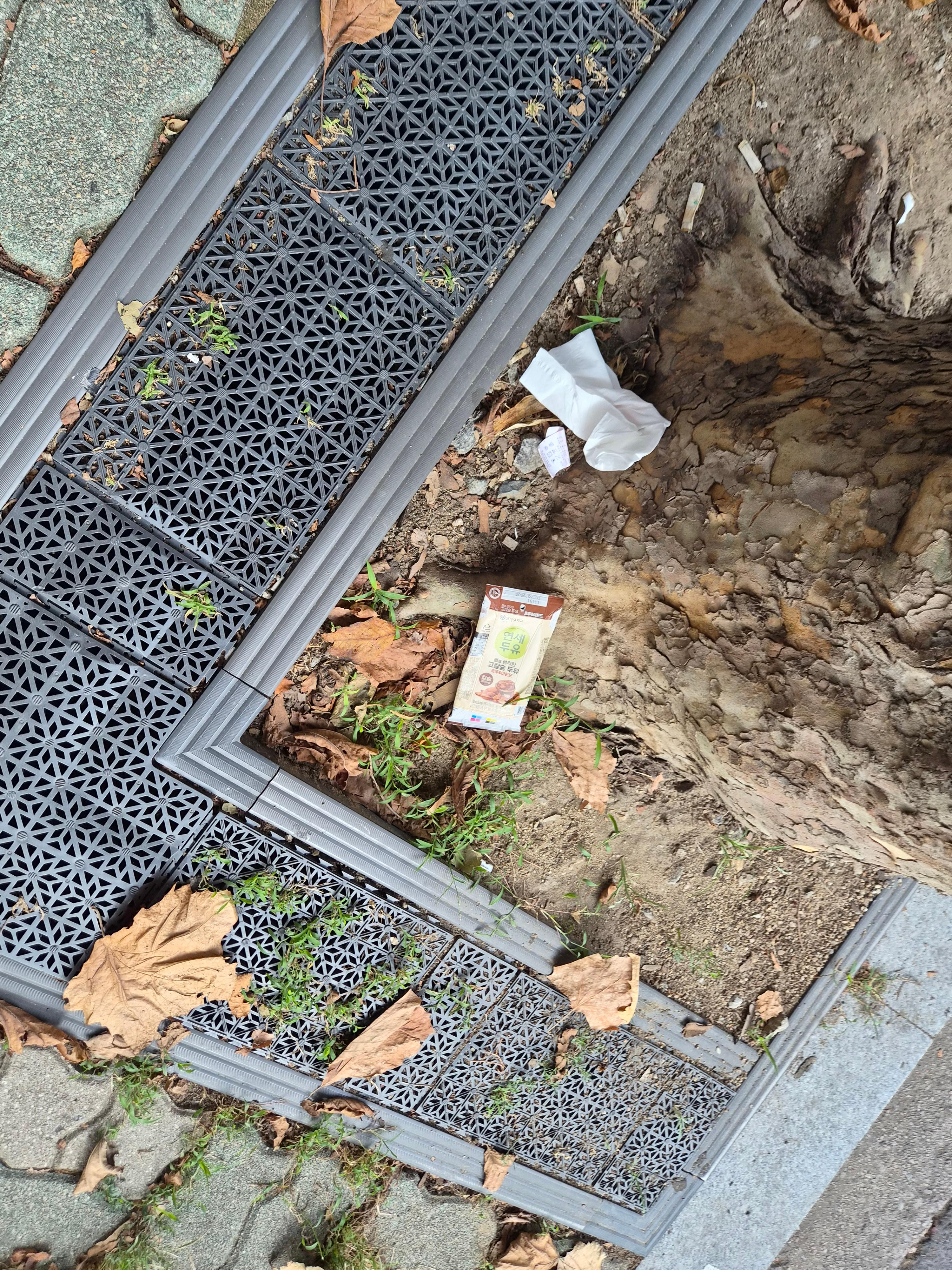 유치원 아이가 고소하고 맛난 두유만 마시고 남은 상자를 나무 밑에 떨어뜨린 걸까요?