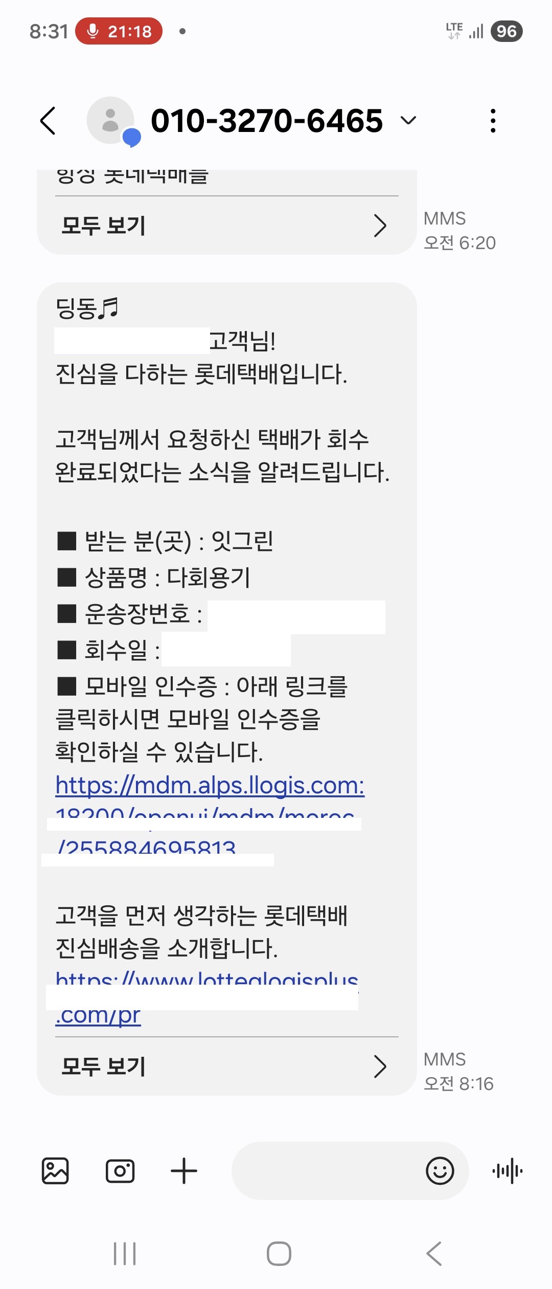 24. 수거가 완료되면 문자와 알림톡이 옵니다.