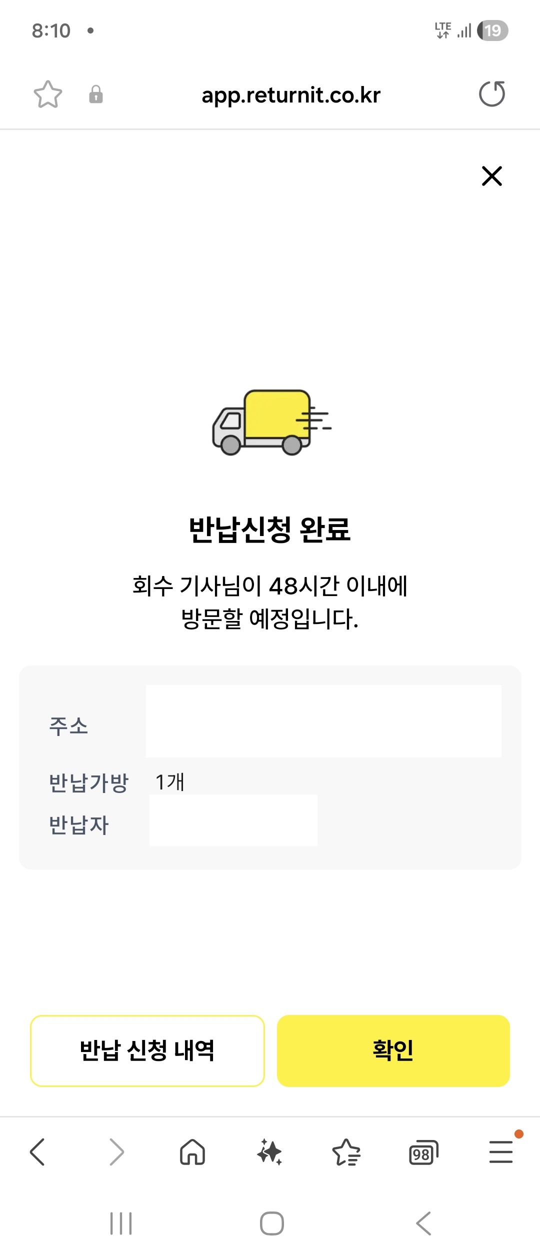 20. 주소가 등록되었으면, 반납신청을 해요!